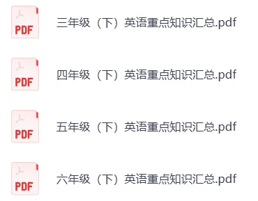 (电子版可下载打印)小学(下)英语重点知识汇总 很多同学家长想要初中英语相关资料。 所以今天给大家推出:《(下)英语重点知识汇总》,可直接打印! 老师已为大家备好电子打印版,关注公众号后复制链接浏览器打开即可直接领取完整电子版资料。 篇幅有限,以下仅展示部分内容 如何获取完整版资料 点击关注“三藏改作文”公众号 关注公众号后复制链接到浏览器 即可免费领取 链接:https://pan.quark.cn/s/7d942ed6f5ea