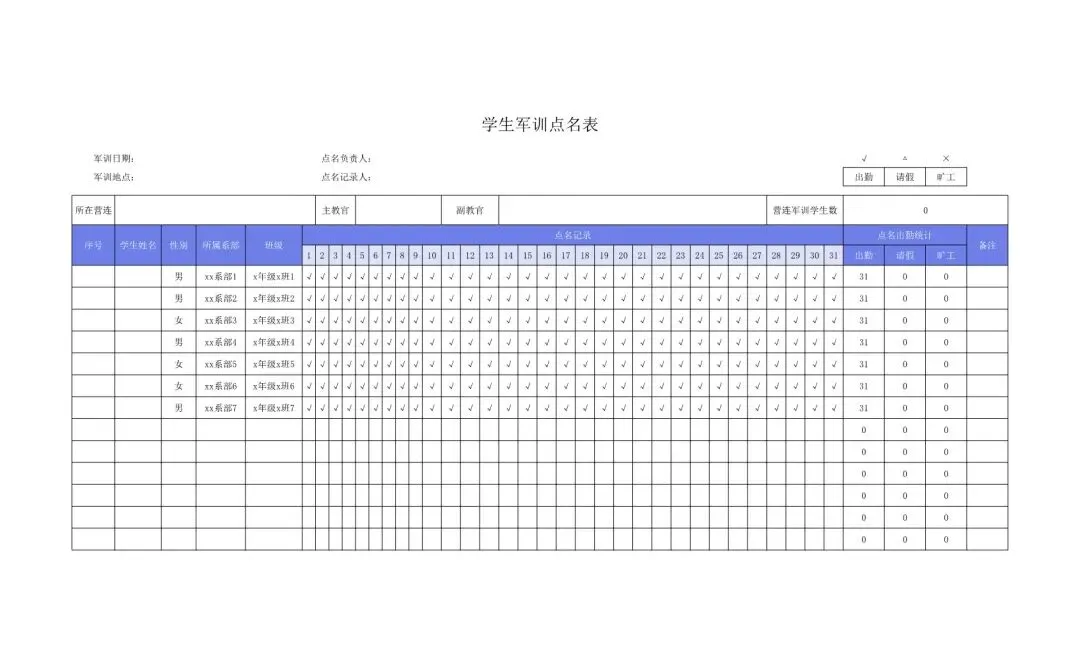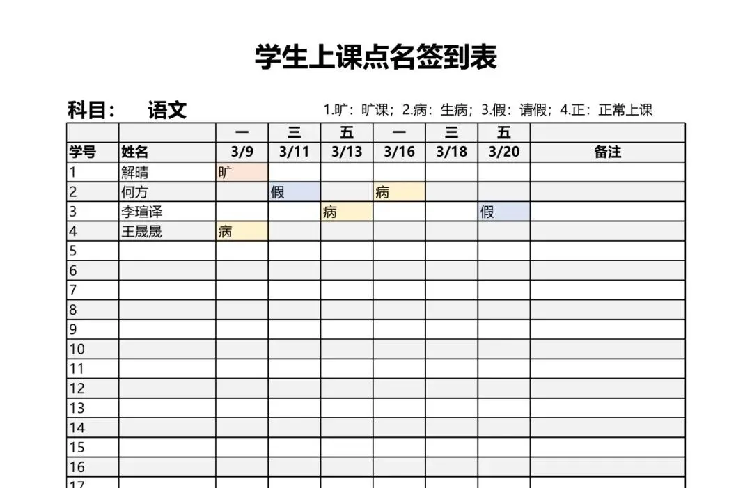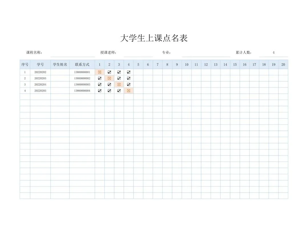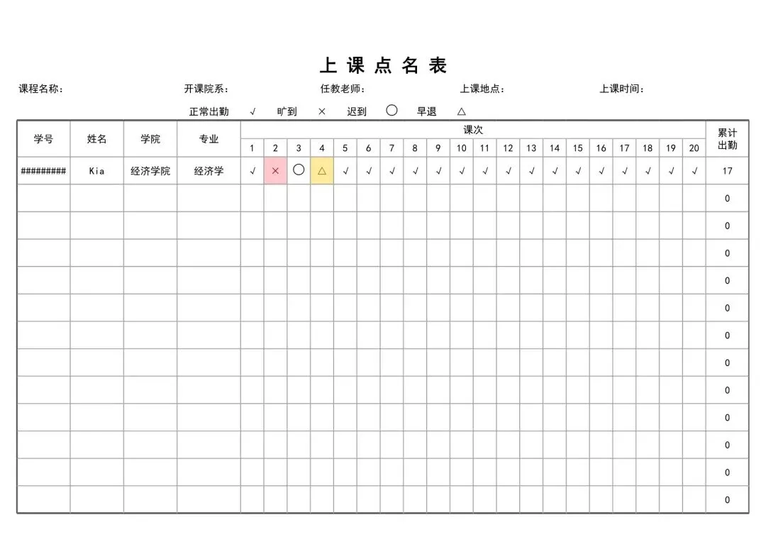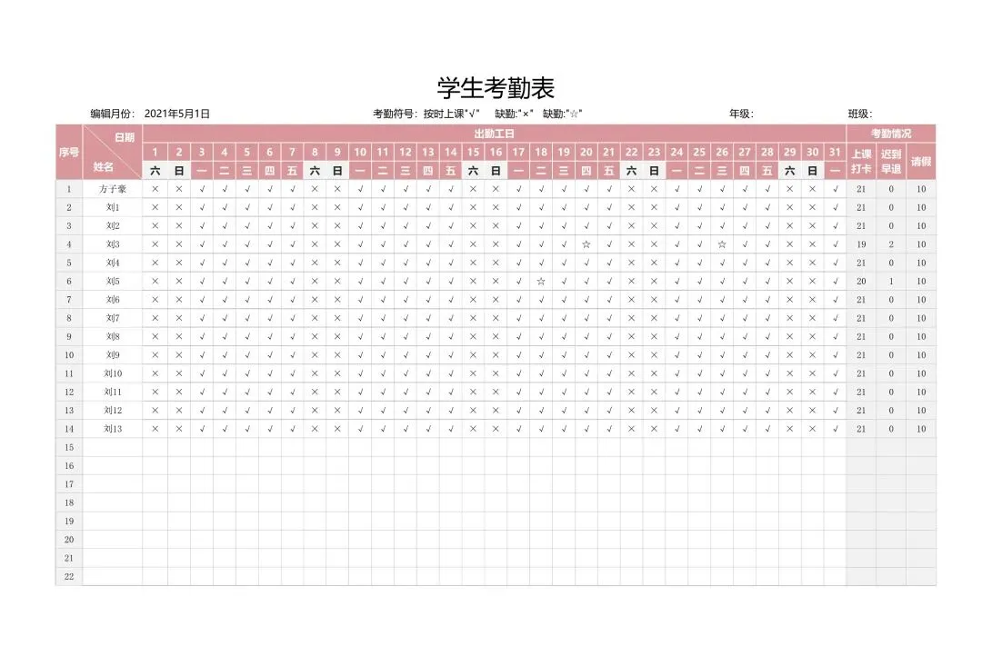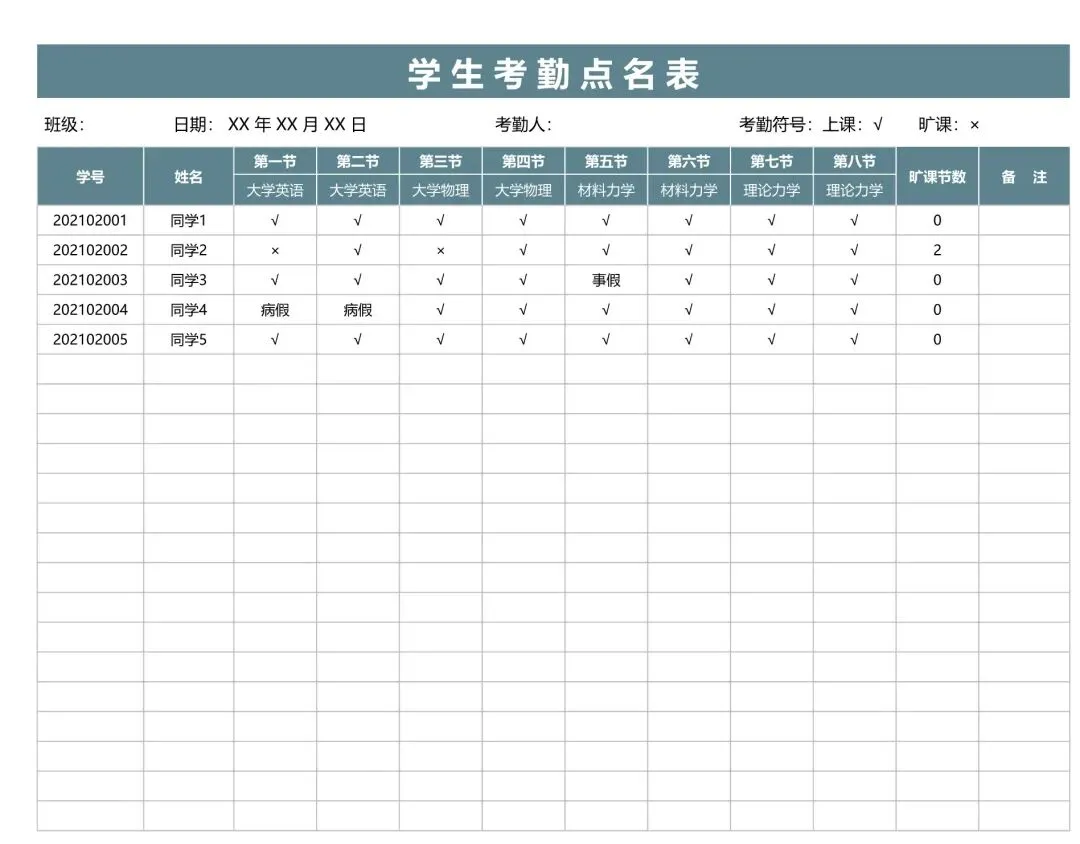 【50套】学生考勤点名表,Excel电子版免费下载!