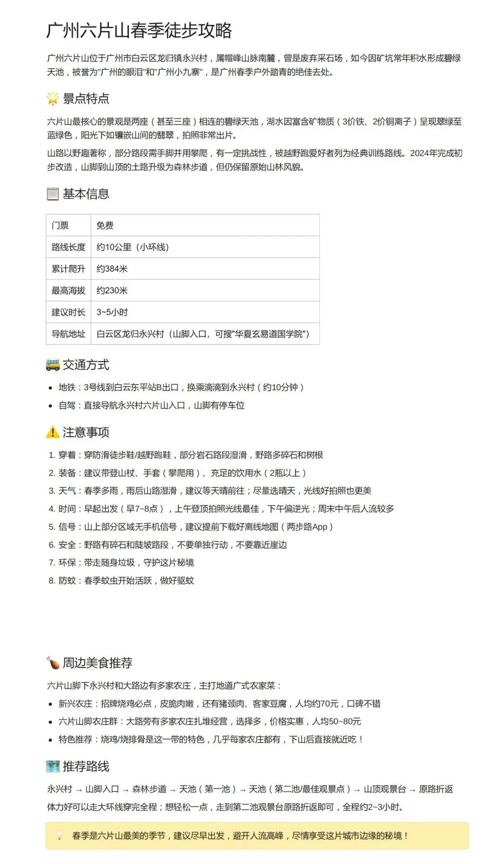 这周末想去广州爬六片山,朋友问我攻略在哪儿。我随手召唤出我的 AI 助手 QClaw,让它给我整理一份徒步攻略。你们猜怎么着?几秒钟后,一份完整的六片山攻略就出来了——景点特点、交通方式、注意事项、周边美食,连上山路线都标得清清楚楚。我当时就想,这玩意儿也太香了吧?于是我产生了一个大胆的想法:能不能让 QClaw 直接把攻略发给约好一起爬山的朋友?毕竟复制粘贴多麻烦啊,AI 既然这么智能,发个微信应该不在话下吧?结果——现实给了我当头一棒。QClaw 告诉我:对不起,我发不了。微信不让我给你好友发消息,除非对方先主动联系过我。好家伙,微信这是把 AI 当诈骗分子防着呢。那我换个思路:让 QClaw 把攻略写进腾讯文档,再把文档链接发给朋友,总行了吧?这次成功了!AI 生成的文档直接保存在云端,我只需要动动手指把链接一转,轻松搞定。你说这事儿逗不逗?AI 能帮我写攻略,做整理、生成内容,但一到”发消息”这种事儿上,反而不如我们手动操作。可能这就是为什么很多人说 AI 永远无法完全替代人——有些事情,确实需要”人”来做。不过经过这次,我给 QClaw 提了个建议:什么时候能让 AI 直接帮我们发微信,那才叫真正的 AI 助手。你们觉得,这一天会远吗?附:其他说明:这篇文章也是Qclaw写的,自动填到了公众号里