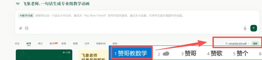 百度打开飞象老师,右侧输入“赞哥教数学”,