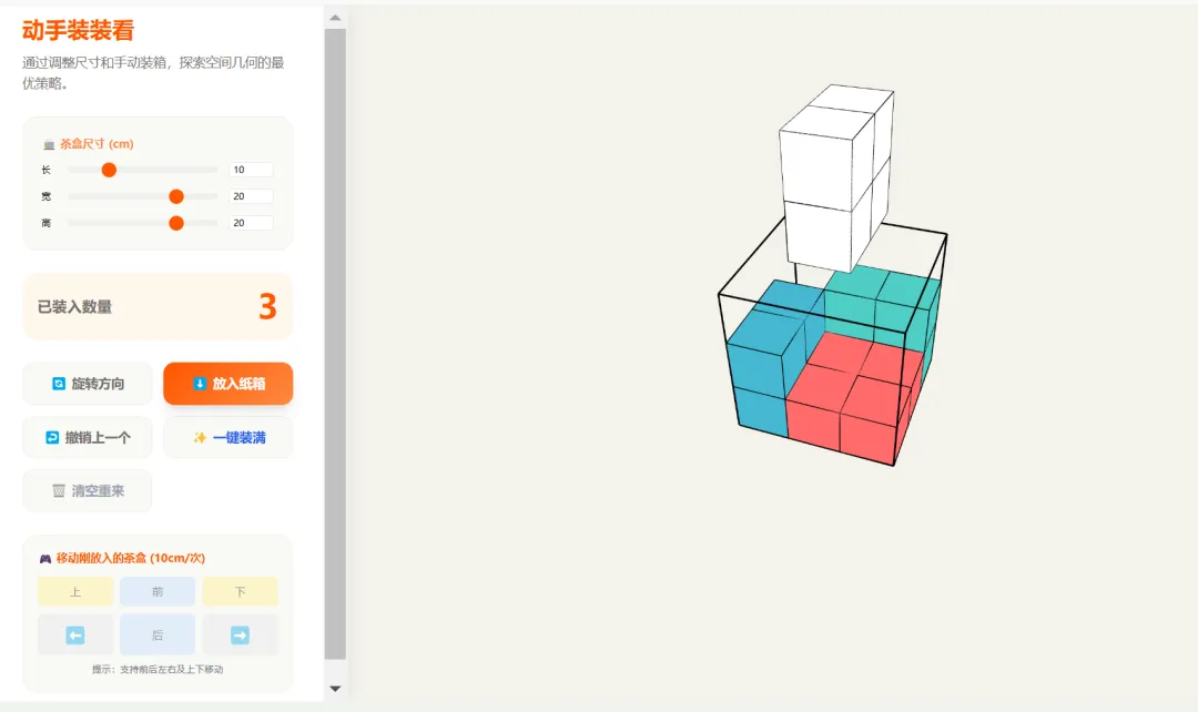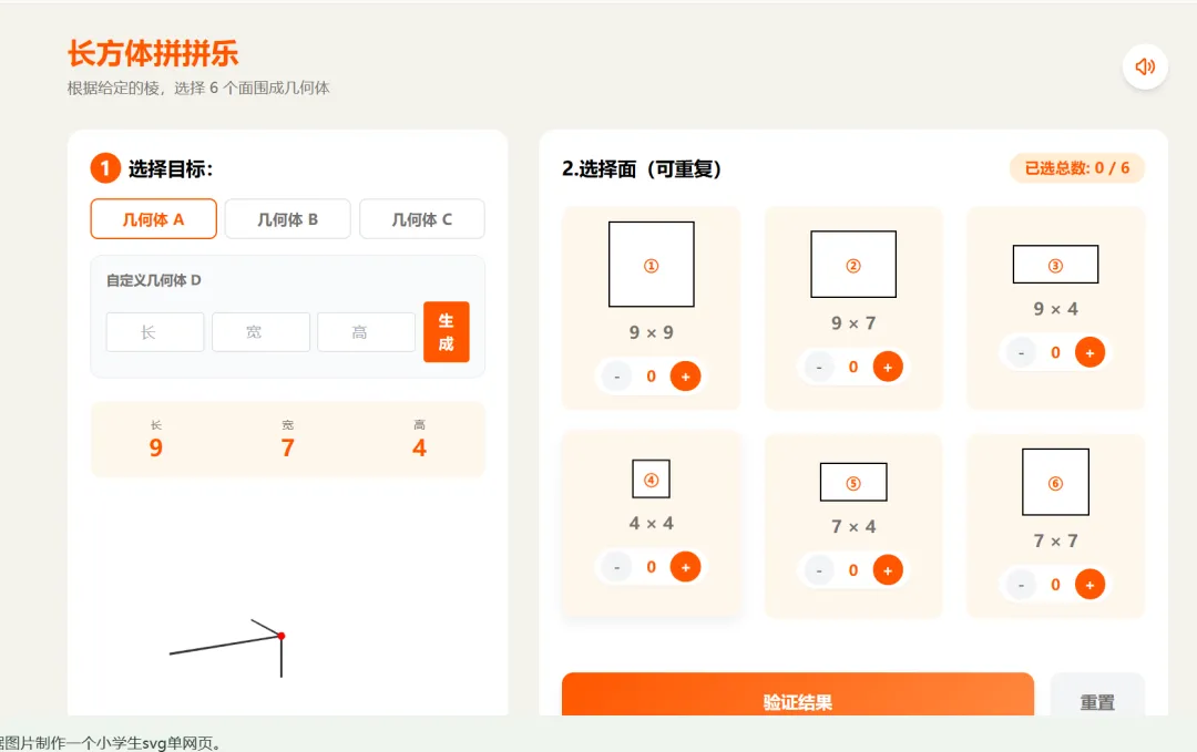 这是五下书本p22的第7题,主要功能是能够自动生成长方体,用来验证选择是否正确。增加了自定义生成面的效果。
