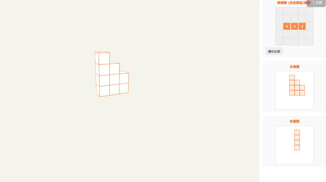 这也是书本中的一道习题,主要功能还是能够支持增减小正方形,能够直观看到三视图。