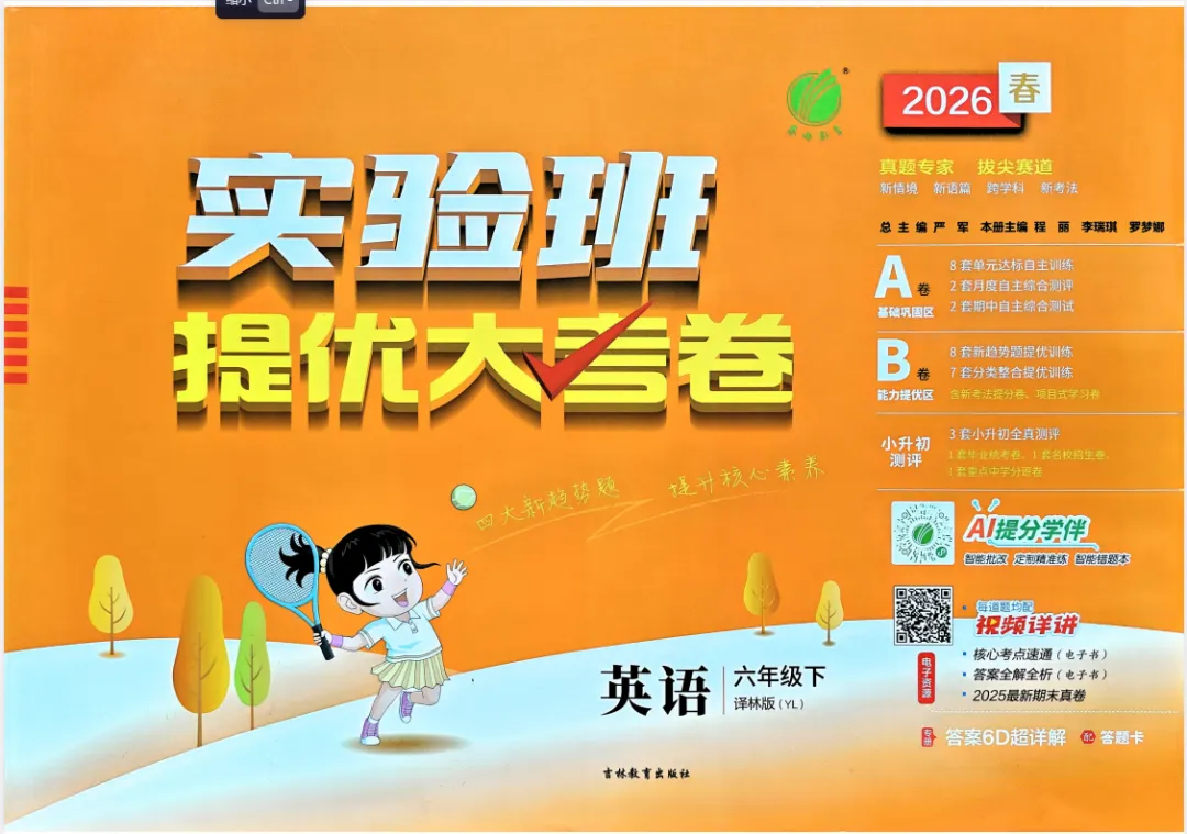 🌟今天给家长们分享的是26春六年级下册英语《实验班提优大考卷》电子版可打印。学会合理安排时间完成,孩子一定能在学习中收获知识,收获快乐,变得更加聪明,更加自律!一起期待孩子们新学期更棒的表现!需要的家长抓紧领取一份给孩子打印🖨️出来,让孩子练一练吧✍🏻欢迎转发,助力更多孩子学习进步!