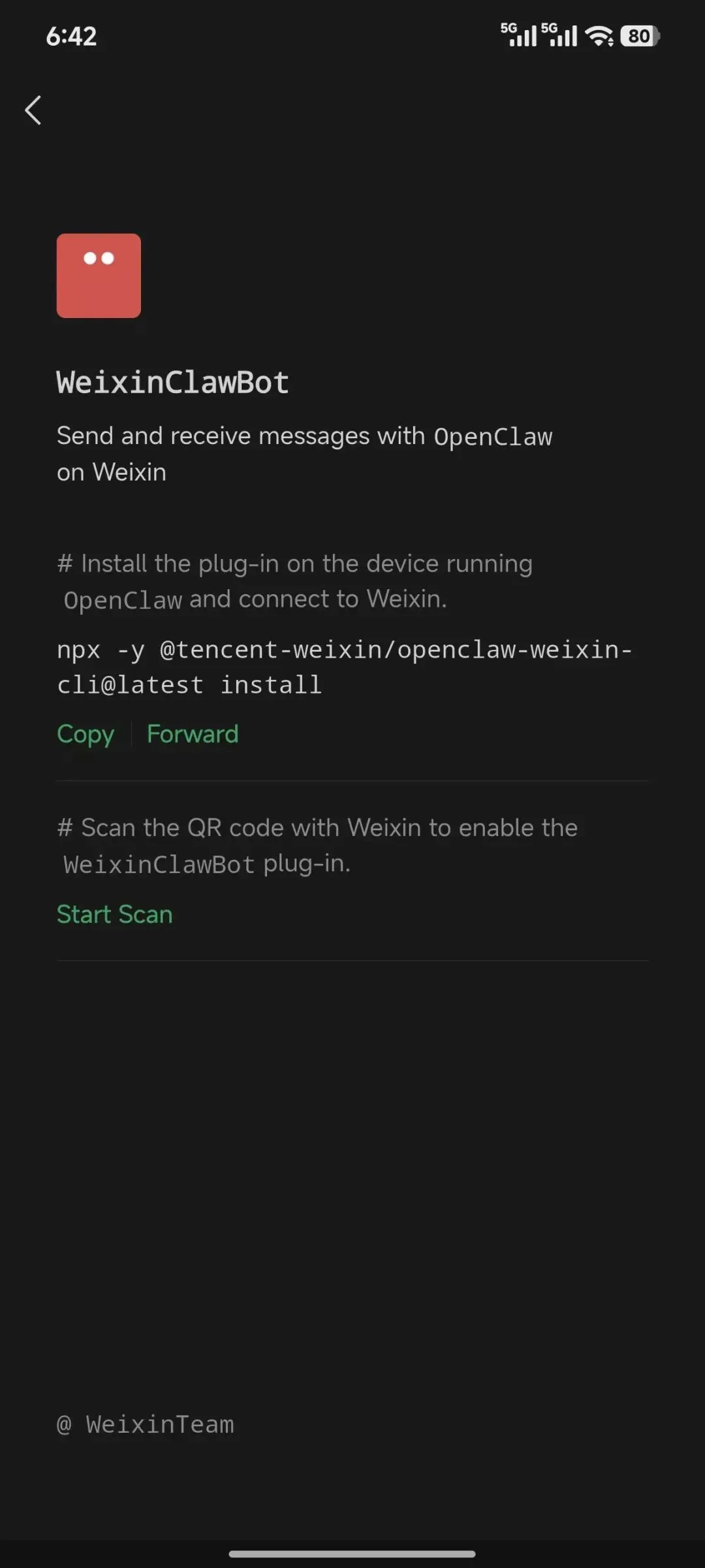 npx -y @tencent-weixin/openclaw-weixin-cli@latest install
