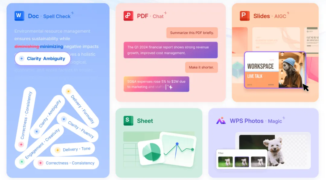 高兼容性与本土化:完美兼容Microsoft Office所有格式,打开、编辑、保存无格式错乱,还支持PDF与Word、Excel等格式互转;内置海量中文模板(简历、合同、课件、海报等),适配国内办公、学习场景,还有本土化功能(如汉字拼音标注、中文校对)。