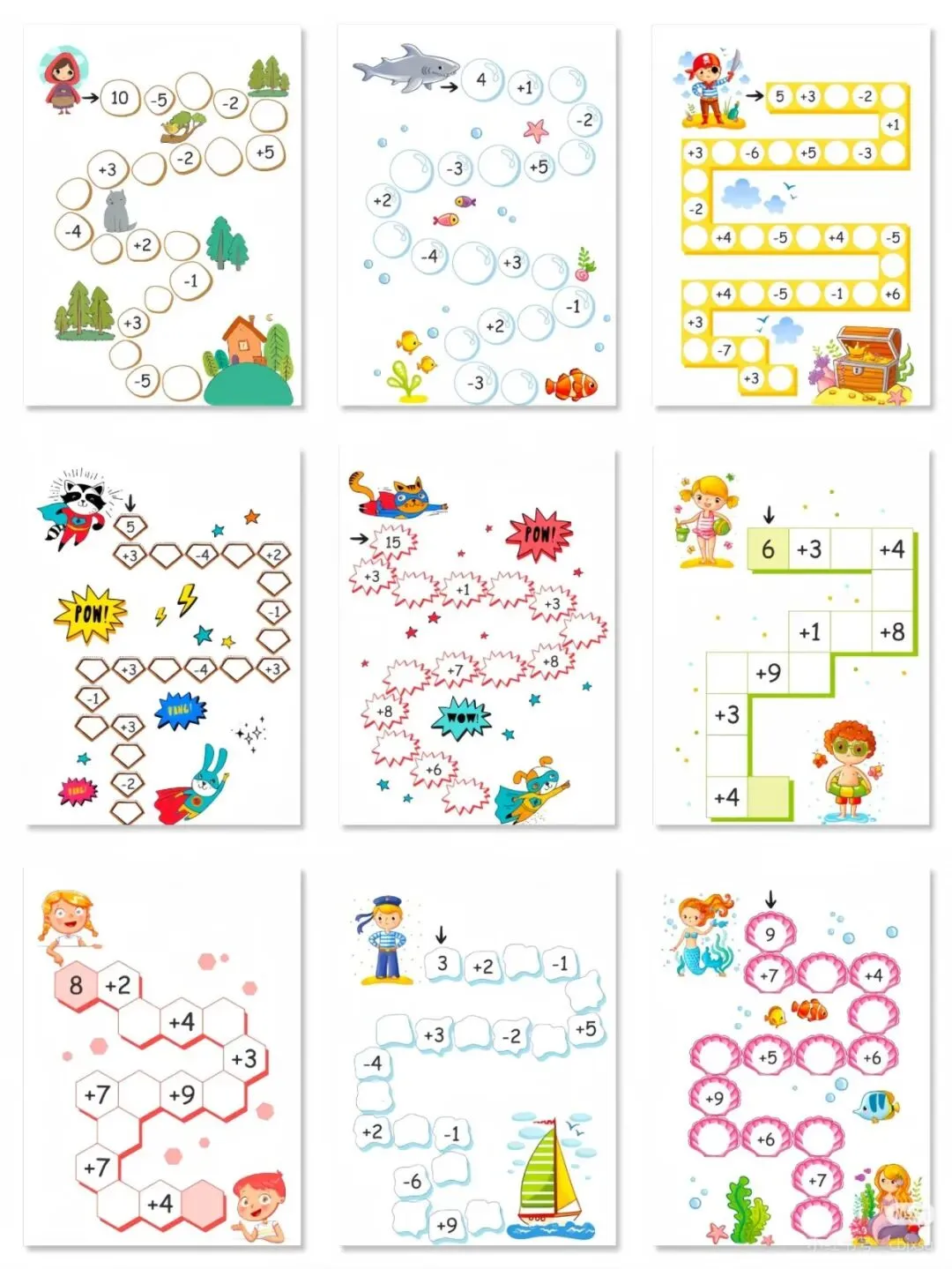 :棋盘式设计,画风可爱,边玩边学,极大提升计算能力和数学兴趣。 - 高清可打印排版