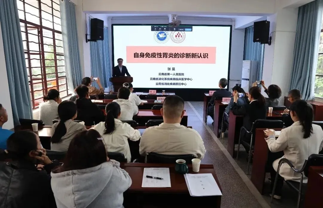 仪式后,专家团队开展专题培训与实操带教。郭强教授以《消化道癌早期诊治的思考》为题,系统讲解消化道癌早诊早治相关知识并分享临床经验;张昱教授带来《自身免疫性胃炎的诊断新认识》专题授课,梳理该疾病诊疗前沿进展,解答基层诊疗疑惑,授课中还与医护人员互动答疑,现场学习氛围浓厚。此外,张昱、李霆等教授深入医院内镜中心,以实际病例为依托,手把手指导医护人员内镜操作,讲解操作技巧、风险防控等内容,切实提升基层医护人员实操能力。