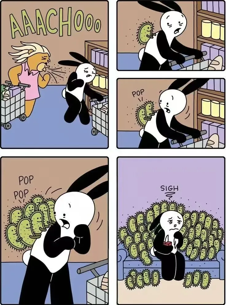 漫画梗图|我,一只被喷嚏“扎”心的兔子