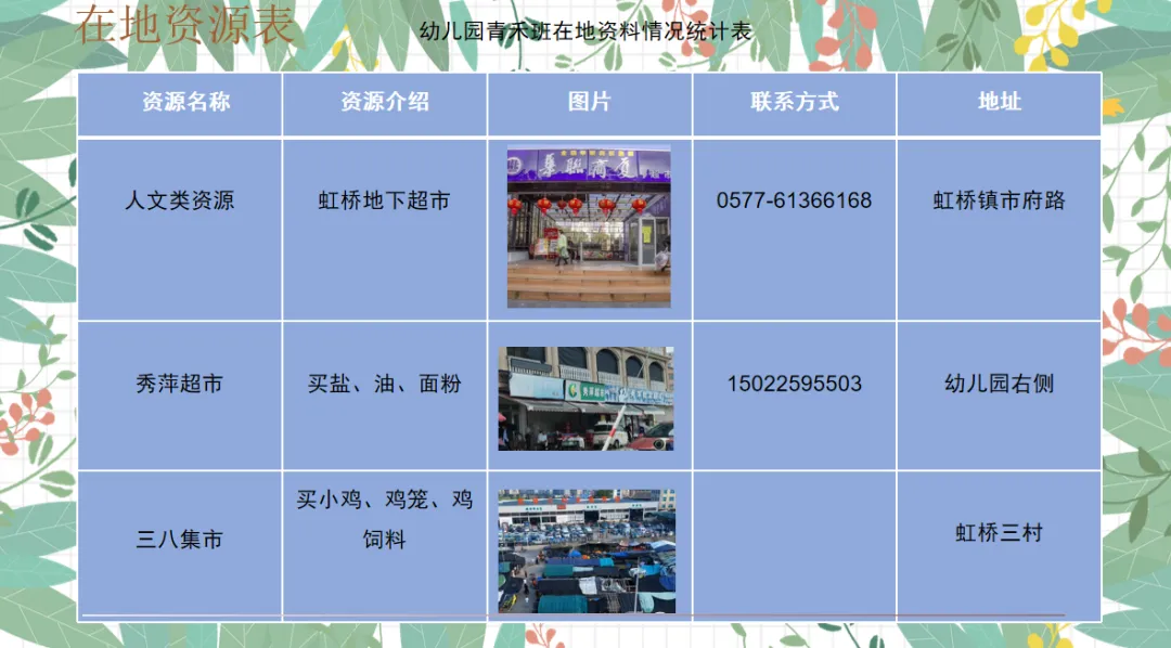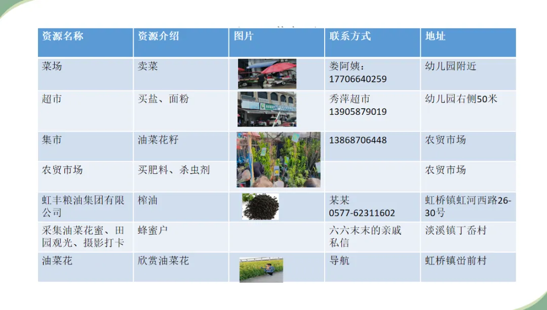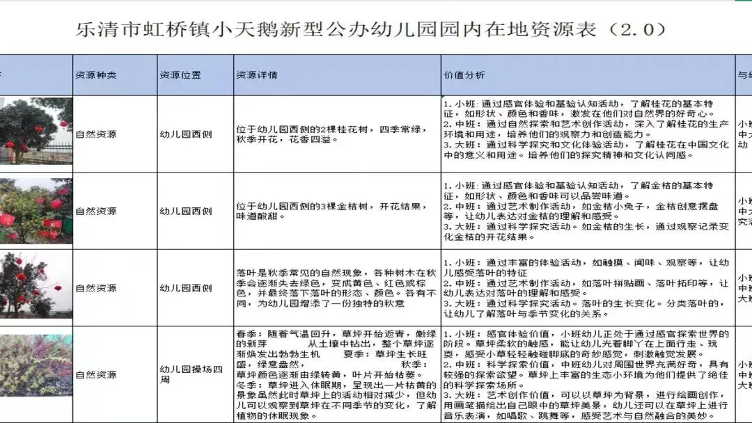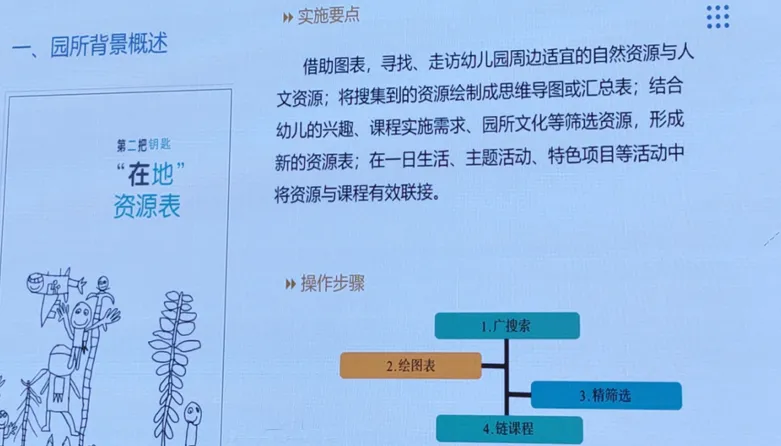 在课程实施过程中,我们高度重视在地资源。我们以“广搜索、绘图表、精筛选、链课程”为核心路径,充分整合幼儿园园内及周边的自然资源与人文资源,让每一份在地资源都成为孩子成长的养分。
