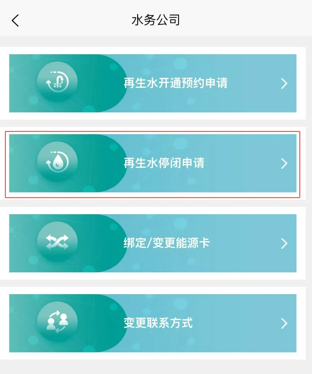 2.选择“再生水停闭申请”。