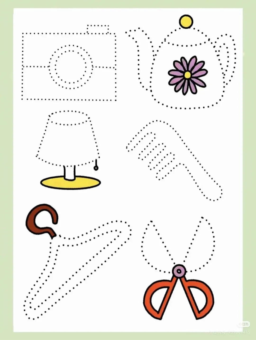 :每页均为简单清晰的线条图案,难度循序渐进,保护视力,方便孩子跟练。 - 完整高清排版