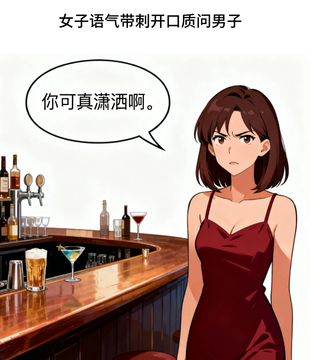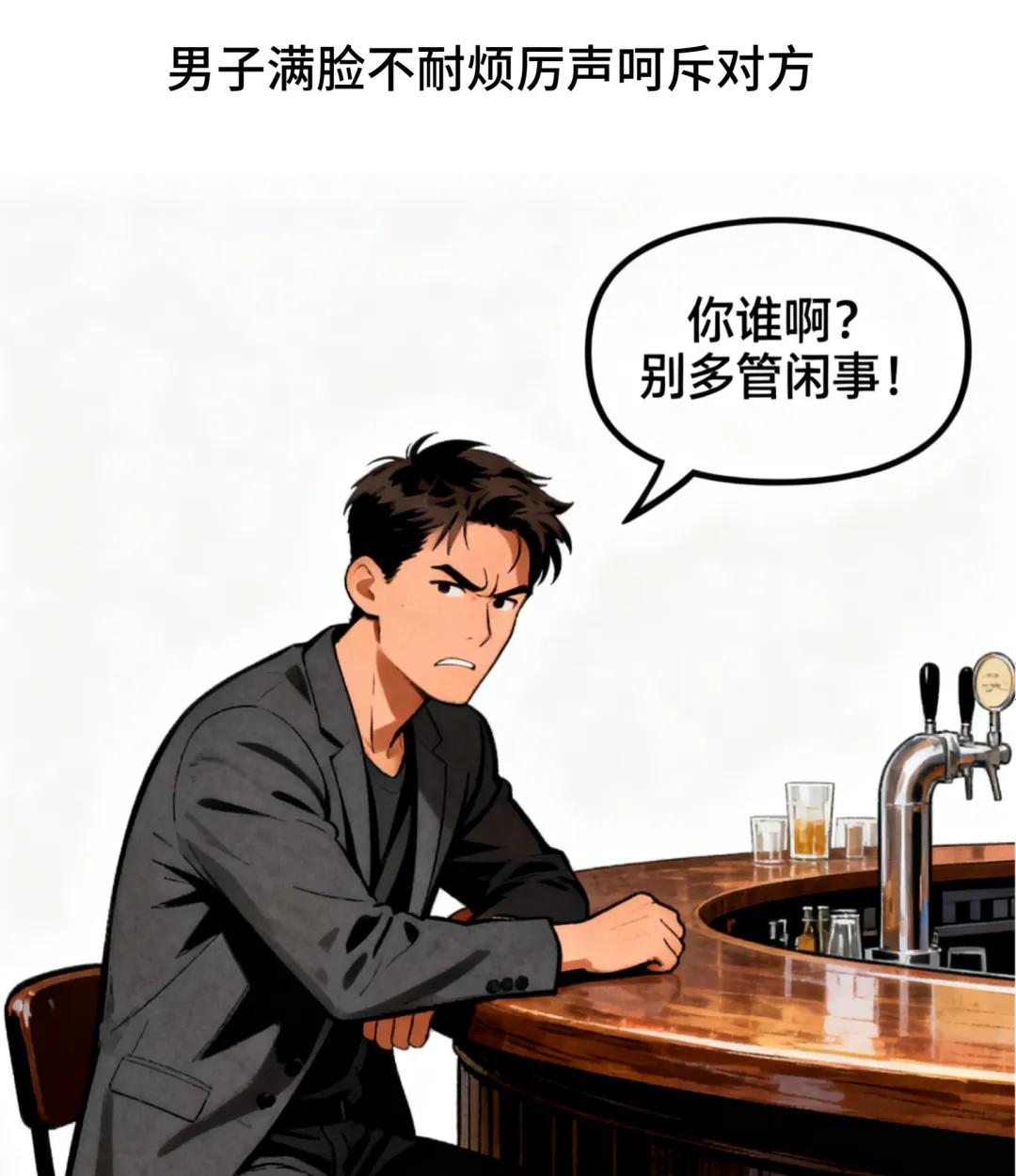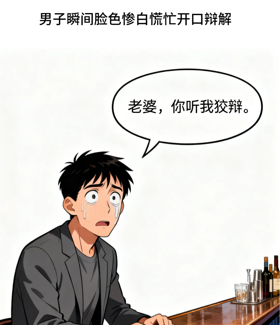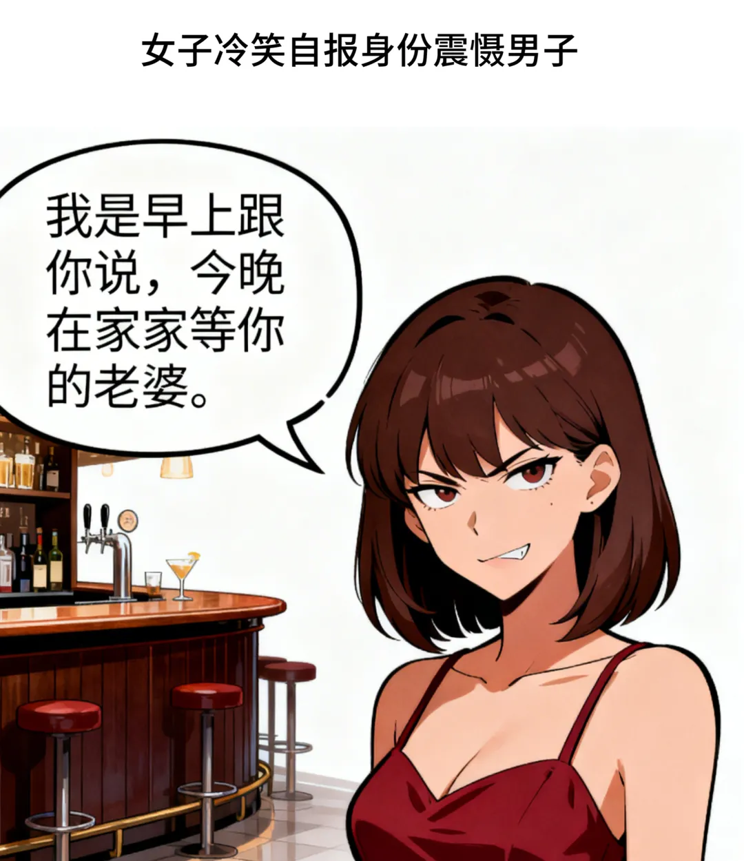 趣味漫画:妻子走到酒吧丈夫身边说:你可真潇洒啊.丈夫不耐烦道:你谁啊?别多管闲事!妻子冷笑:我是早上说今晚在家等你的老婆.
