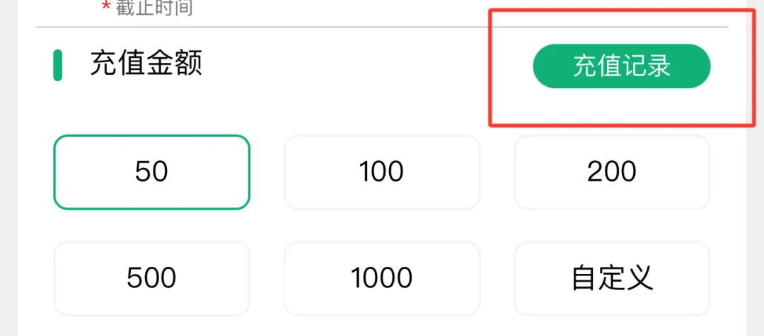 点击“充值记录”,可查看当年的预付费充值记录,包括充值时间和充值金额。