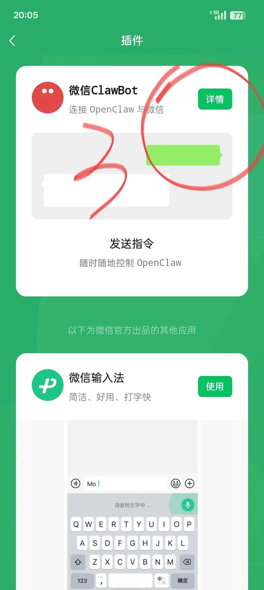 确保你的微信是最新版本,否则可能看不到插件入口。