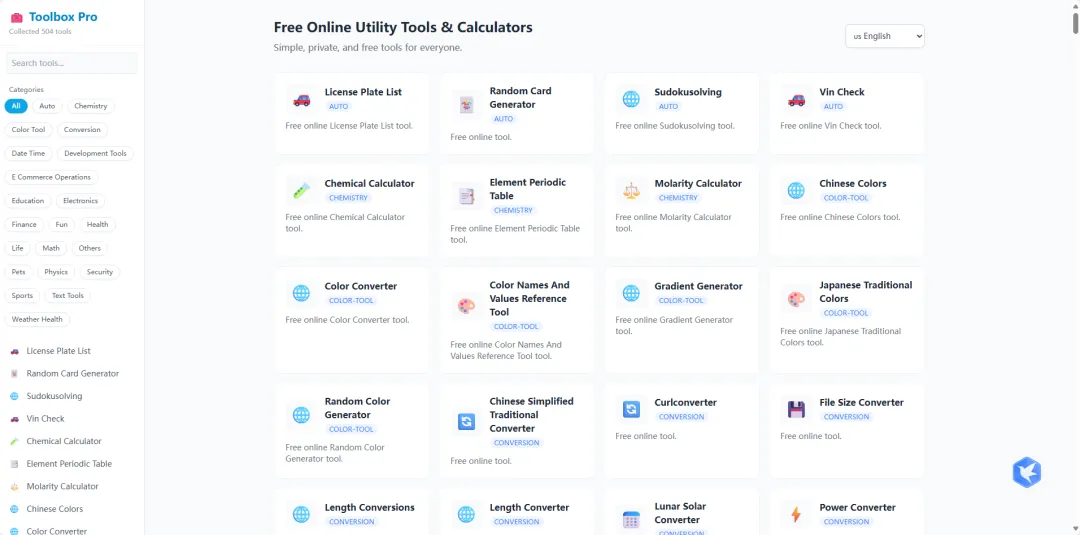 超实用!它收录 502 款免费在线工具,覆盖化学计算、开发辅助、金融理财、健康医疗等数十类