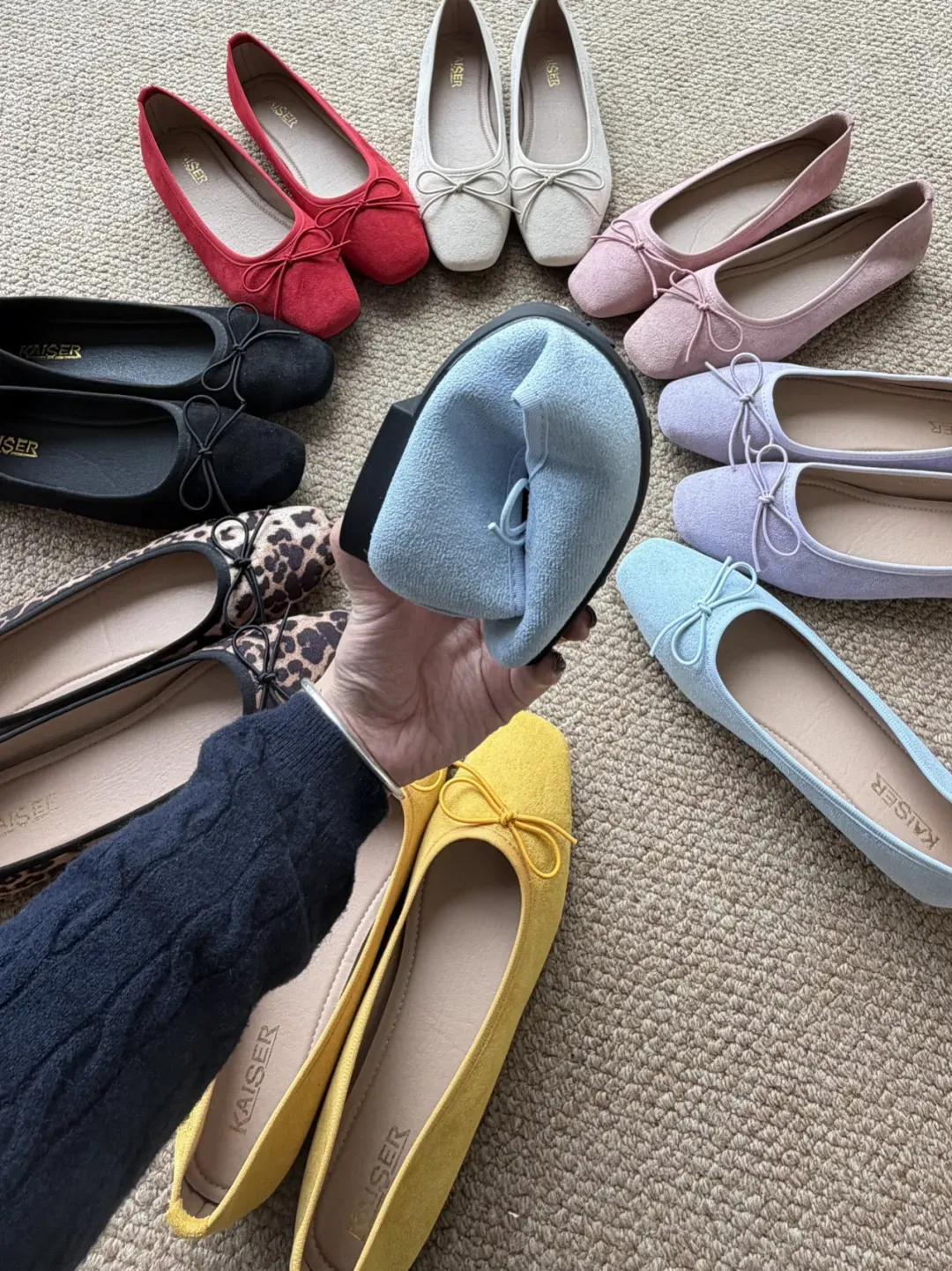 芭蕾鞋型,贼软乎,鞋面完全随脚型,鞋底可以对折,舒适不累脚。