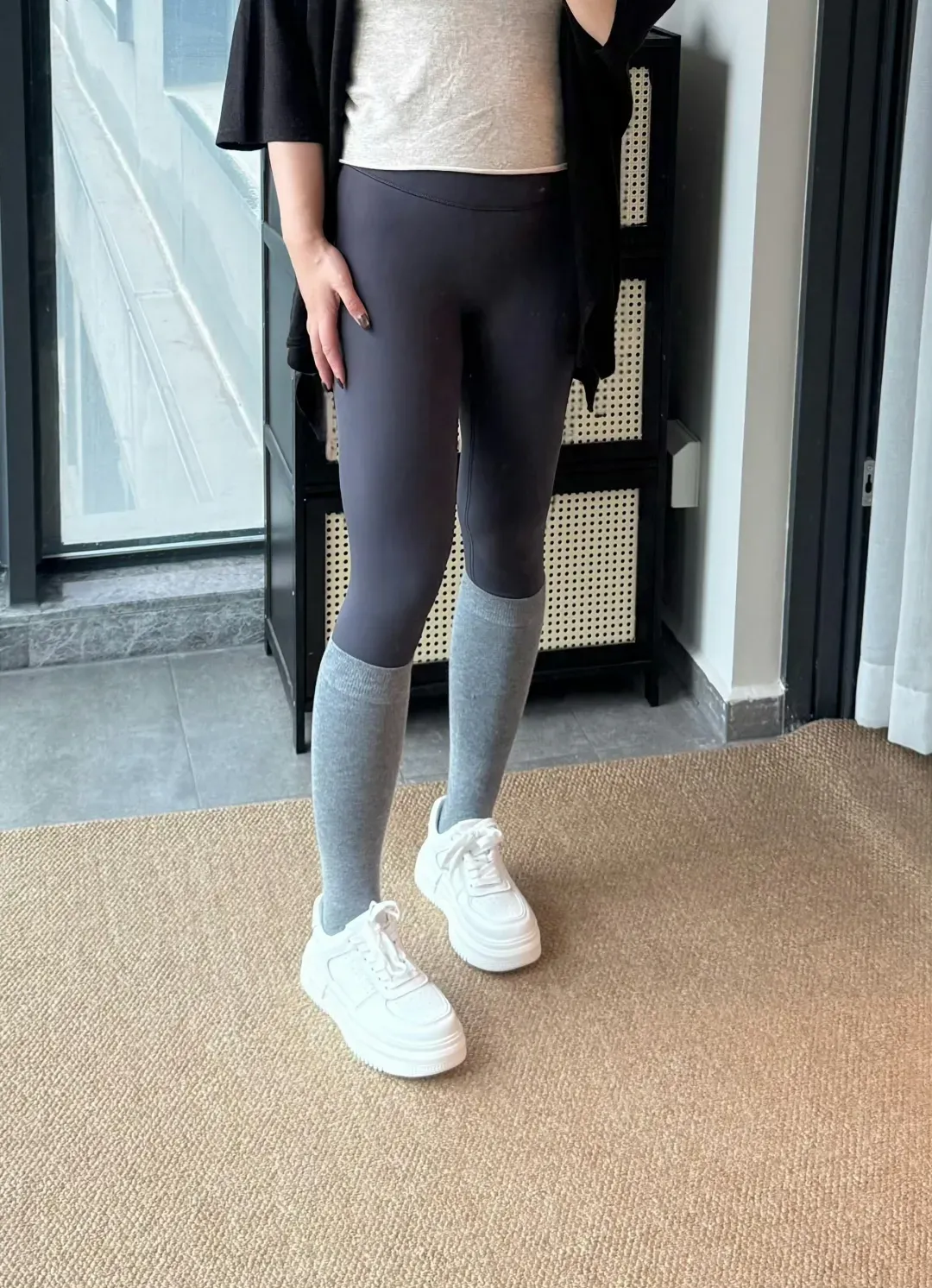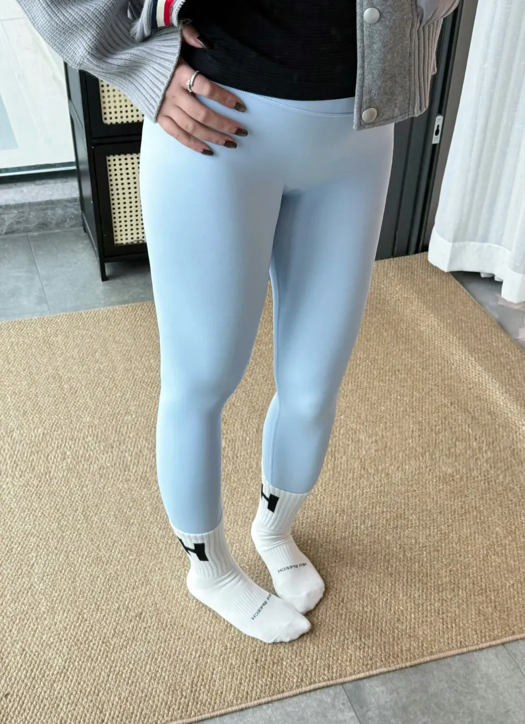 最大的优点是:舒服、没有尴尬线。可以当秋裤打底裤穿,站起来蹲下基本都不会有那种勒出来的痕迹,腰部后侧有个小口袋。面料不是那种亮面的,哑光质感,外穿不尴尬。