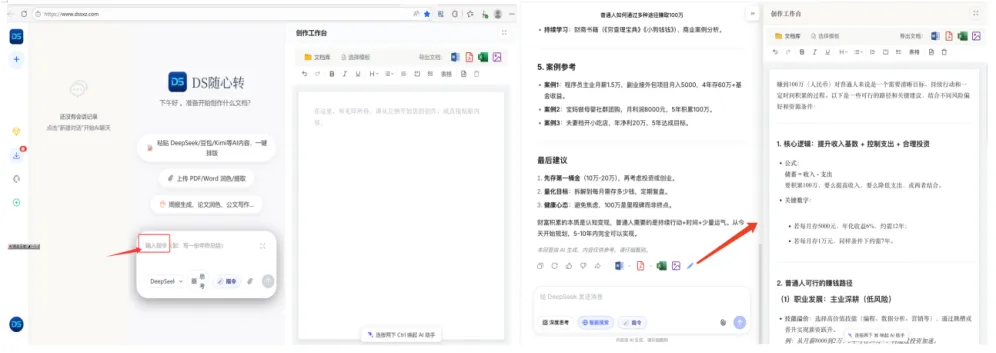 昨天再问DeepSeek,被告知现在有个叫“DS随心转”的浏览器插件,可以实现对多个AI的对话框内容一键导出,还能选择导出格式:Word、Excel、PDF……,并且支持对AI的回答进行二次编辑后再转成品——比如AI给了一版文稿,我改几笔,直接生成最终版,省掉了复制粘贴、重新排版的全部步骤。