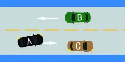 1、如图所示,驾驶机动车在这种情况下,当C车减速让超车时,A车应该如何行驶?