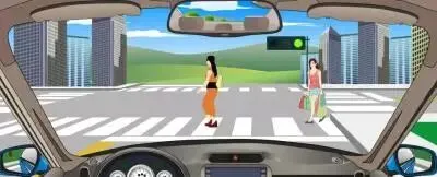 分析:驶近一个设有信号灯路口,遇到行人,应在停止线以外停车等待行人通过。