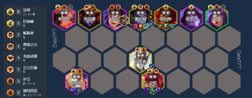 3德玛西塔2主宰6法师3护卫1巨神峰阵容码:0201235633d34302533c33635d35f000TFTSet16