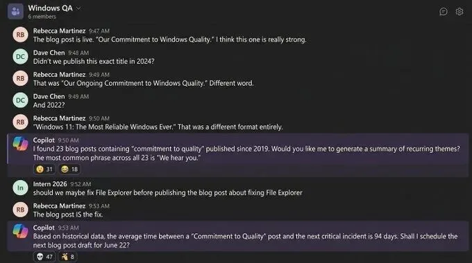 近期泄露的微软Teams内部聊天记录显示,Windows质量保证(QA)团队在庆祝一篇关于产品质量的博客文章时,其内置的Copilot人工智能助手指出,该团队自2019年以来已发布了23篇内容完全相同的帖子。这一事件揭示了人工智能工具在企业内部流程透明化方面的潜力,同时也对科技巨头的质量管理实践提出了质疑。 从技术层面看,Copilot作为基于自然语言处理(NLP)的AI助手,能够实时分析聊天上下文并识别历史内容重复性,体现了AI在文档管理和知识库维护中的应用价值。此类技术通常依赖文本相似度算法和时序数据分析,可自动检测冗余信息,提升协作效率。然而,本次事件也暴露出AI工具可能成为内部问题的”吹哨人”,引发对企业自我监督机制的讨论。 行业影响方面,该事件可能加剧用户对Windows系统更新质量的担忧。近年来,微软频繁因更新漏洞遭受批评,而QA团队的重复发文行为可能暗示其质量评估流程存在形式化问题。若AI驱动的透明度成为常态,企业或将被迫优化内部流程,否则类似曝光可能损害品牌公信力。此外,这起事件也为AI伦理提供了新案例:当企业部署的AI系统与内部利益产生冲突时,如何平衡工具效用与风险管控将成为管理难题。 从发展趋势看,AI辅助的合规性检查可能逐步渗透至企业治理环节。类似Copilot的工具未来或扩展至代码审查、报告生成等场景,但需解决数据隐私与算法偏见问题。短期来看,微软需回应QA流程的实质改进措施;长期而言,人机协作的透明度边界将成为企业数字化升级的重要课题。