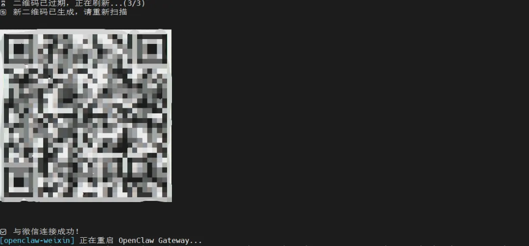 1. 目前微信提供的插件没有配对命令,所以如果二维码过期或需要重新绑定时,请再次执行插件安装命令。