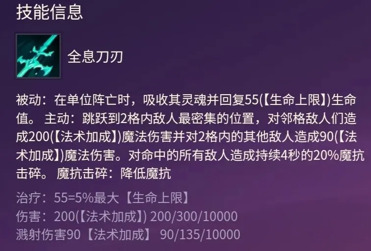 佛耶戈被动技能可以吸收阵亡棋子的灵魂,回复生命值。主动技能跳跃到2格内最密集的位置造成伤害,这个伤害还是Aoe溅射伤害命中的敌人会持续4秒20%魔抗击碎。搭配神器卢登的激荡使用第一个技能破魔减抗,第二个技能引爆黑球溅射伤害拉满。碰到脆皮阵容,两个技能清屏简简单单。