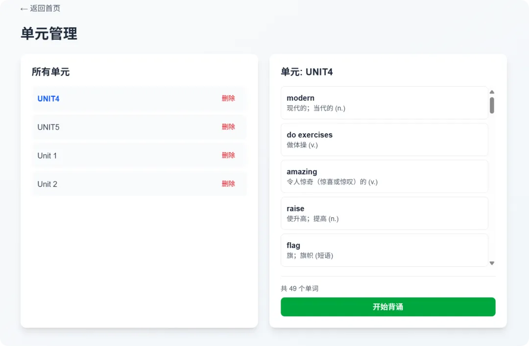 家中有孩子就不可避免要背单词,但是发现背单词的APP都是要收费,要是搁以前,我可能就要付费,但是现在AI这么厉害,何不自己编写一个背单词APP,并且还能定制自己需要的功能。