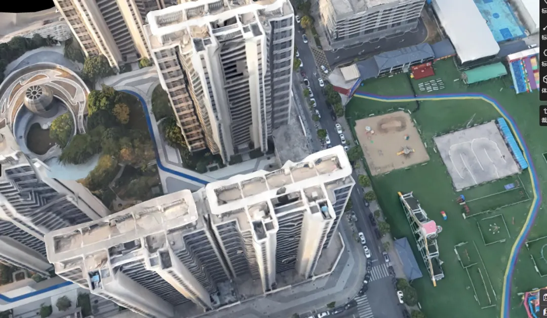 普通三维效果(这里是用大疆air3 飞的90°正射影像跑的三维图,所以侧面信息比较少)
