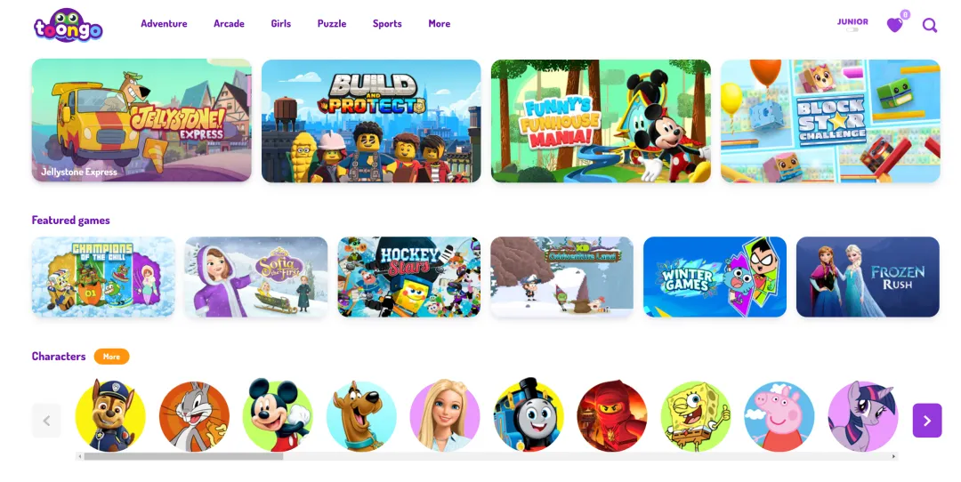Toongo是一款专为儿童设计的在线游戏平台,提供丰富多样的免费游戏