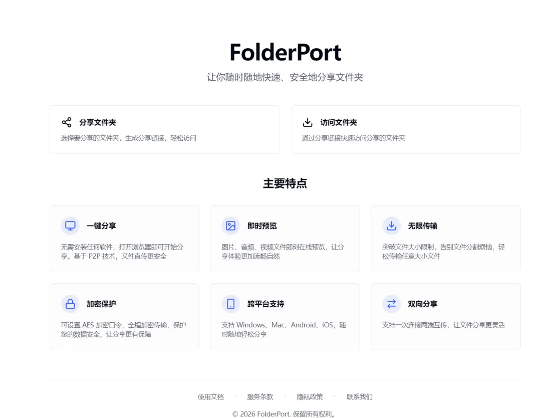 FolderPort是一个云端文件管理与共享的平台,无需安装任何软件,打开浏览器即可开始分享,文件直传更安全