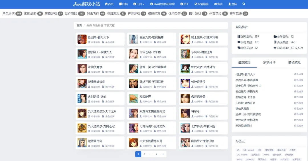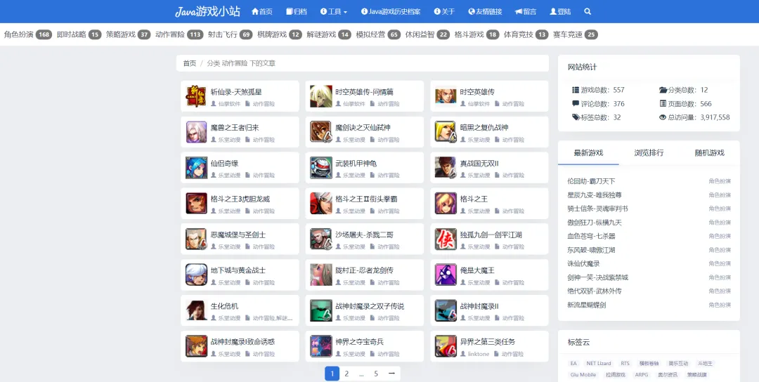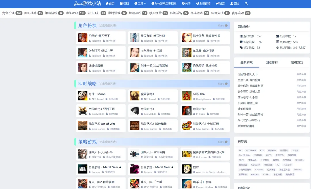 网站上的游戏种类繁多,包括角色扮演、即时战略、策略游戏、动作冒险、射击飞行、棋牌游戏、解谜游戏、模拟经营、休闲益智、格斗游戏、体育竞技和赛车竞速等