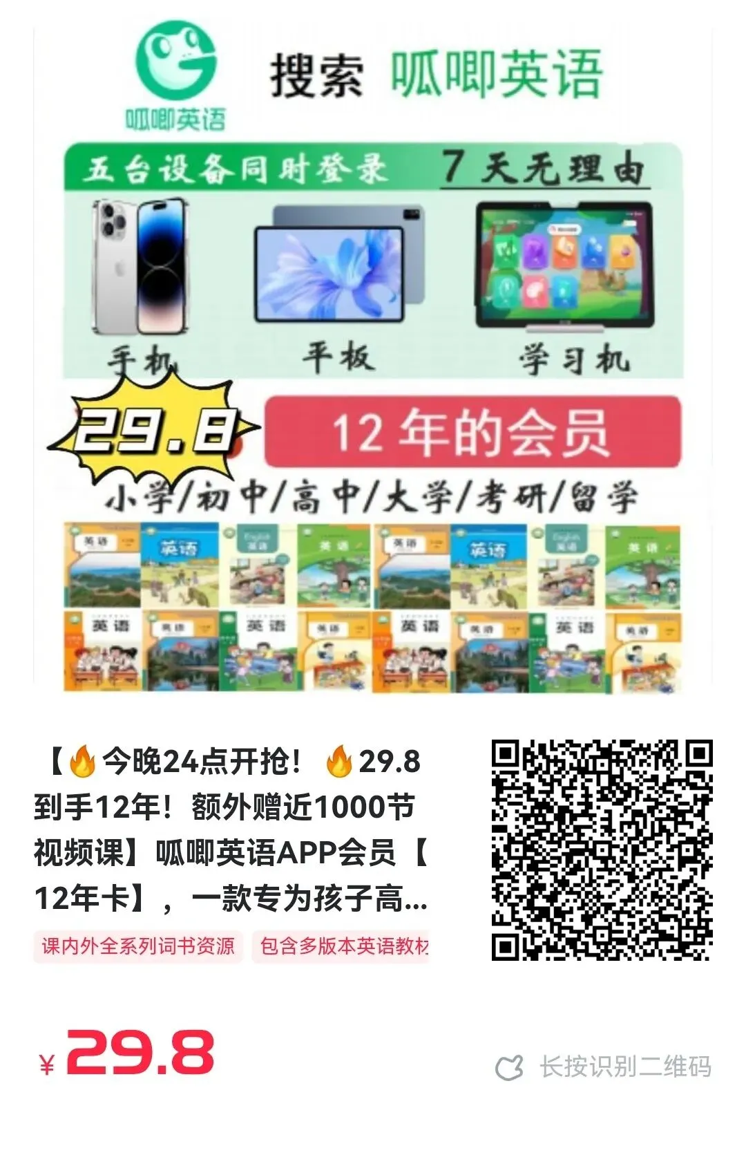 即将下架:呱唧英语APP会员【12年卡】