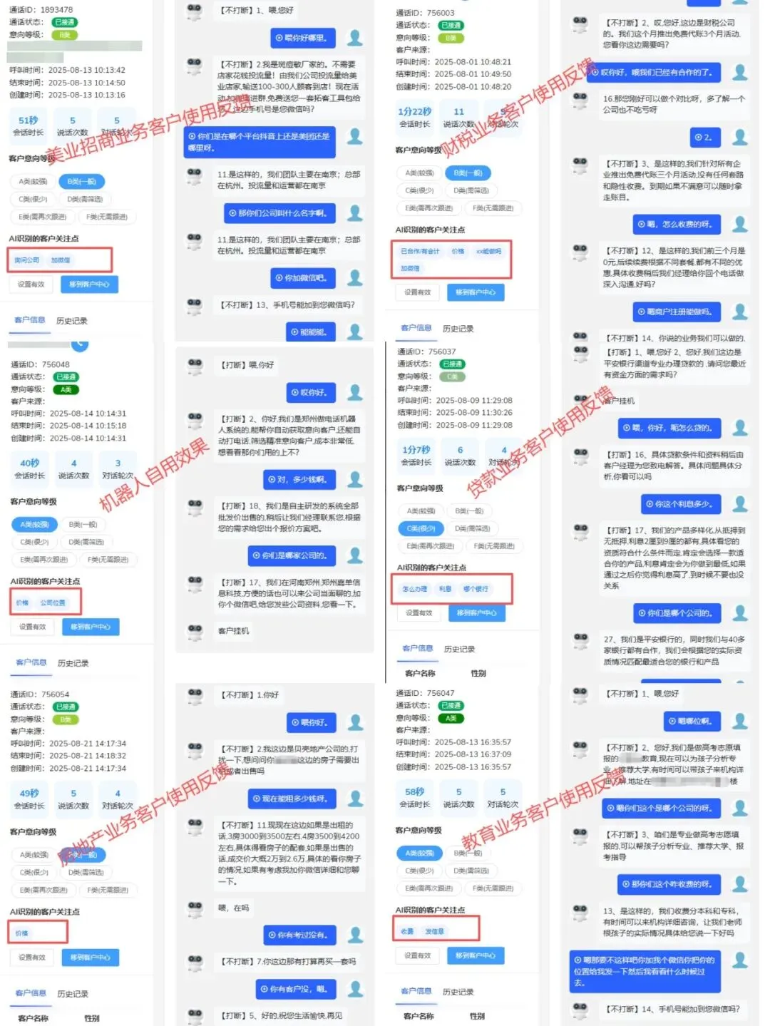 2、机器人每天外拨电话量多,一个机器人每天外拨量在1000通左右,可以设置多个机器人同时拨打,每天成千上万通电话都是小事情。可以大大的提率,提升客户量