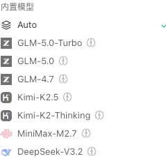 国内用户默认优先国产内置模型,国际用户自动适配对应区域内置模型。