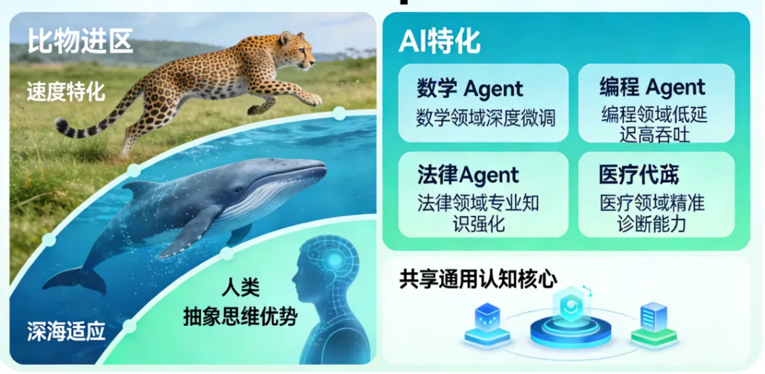 AI亦如此——未来不会是一个“全能神”,而是一群高度特化的“数字物种”: