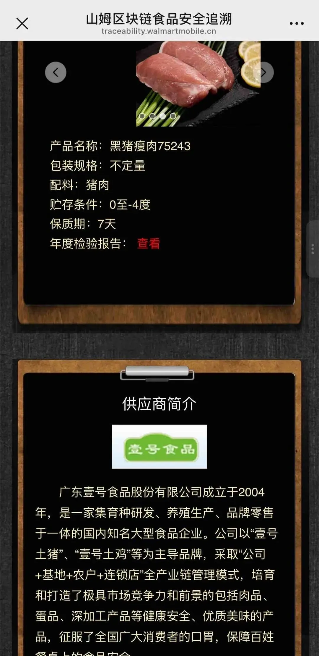 更让姜女士感到不解和质疑的是,3月19日她再次扫码查询时,系统页面中的“食品追溯信息”已凭空消失,仅能看到产品名称、配料、贮存条件等基础信息,以及供应商壹号食品的简介,该产品的溯源信息成了一笔“糊涂账”。