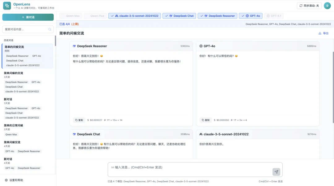 ✔ 同时选择多个模型✔ 一次提问✔ 并排展示结果✔ 清晰对比差异✔ 记录成本与响应时间✔ 选择最优方案