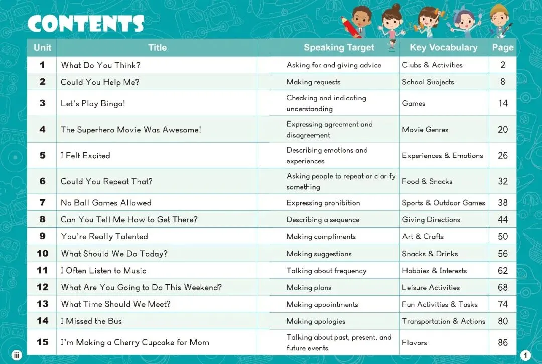 – 包含角色扮演、小组任务、游戏等多种形式,让孩子在玩中练口语,越说越自信。