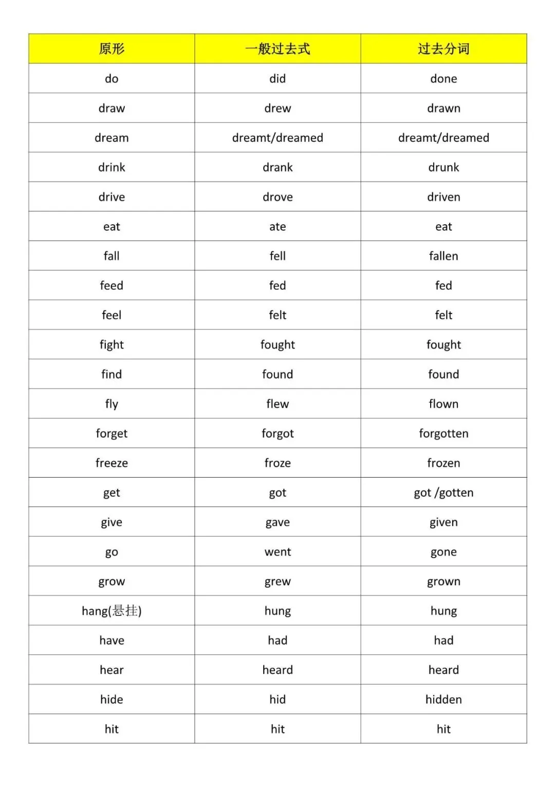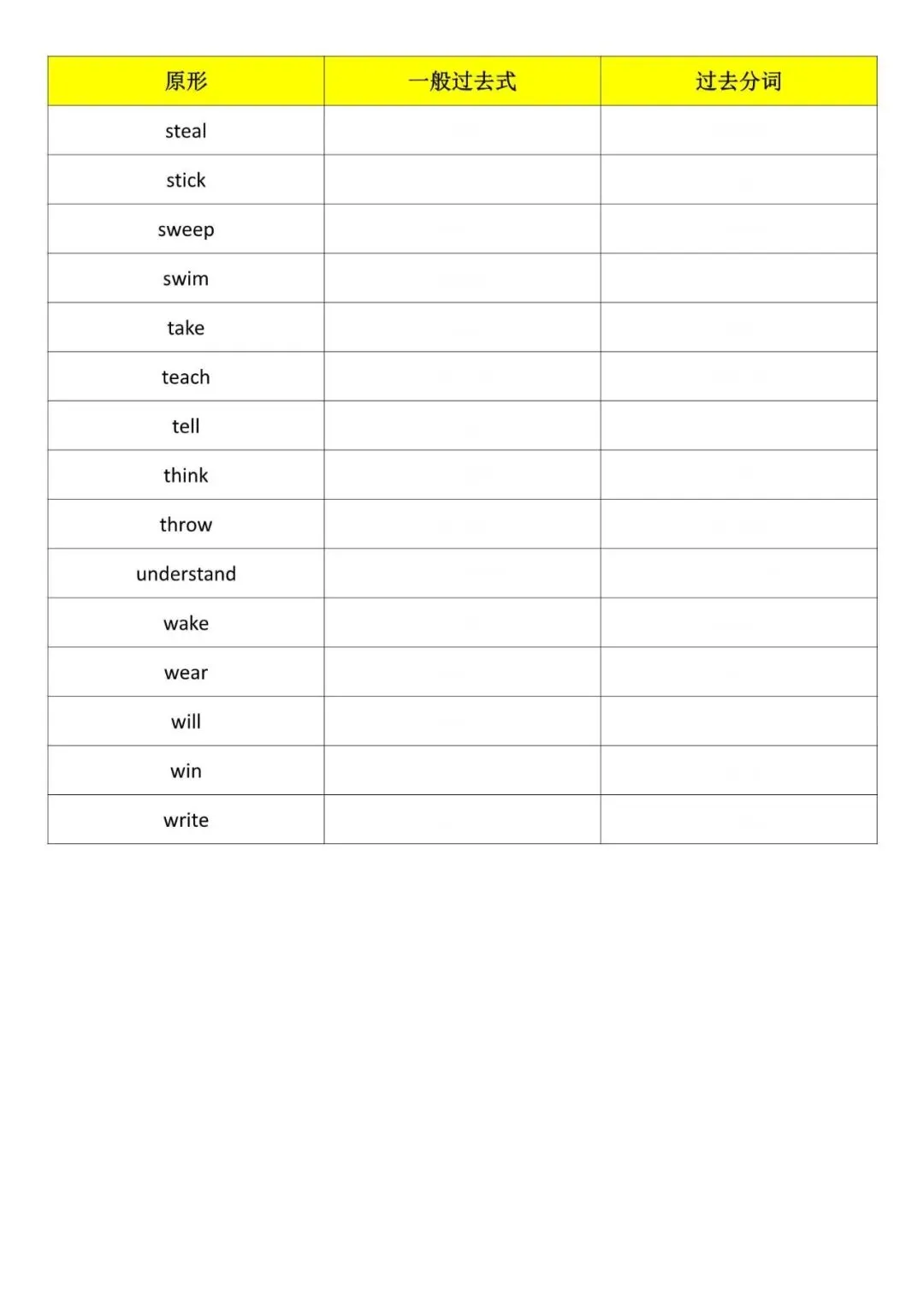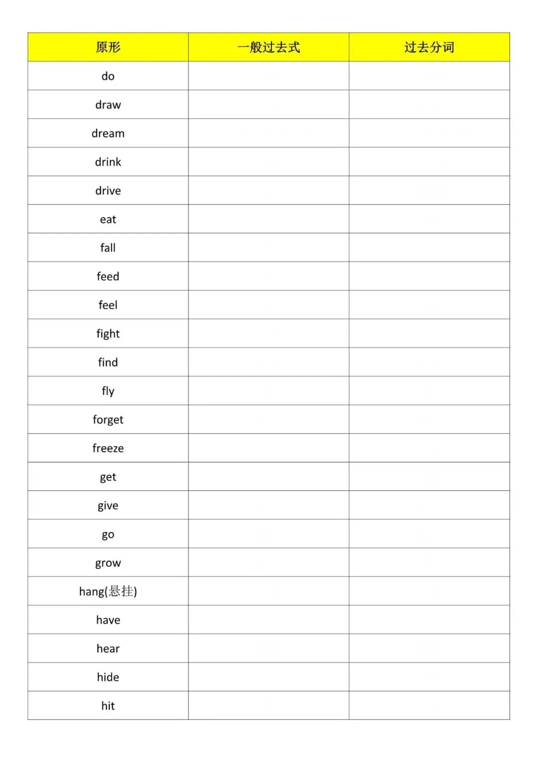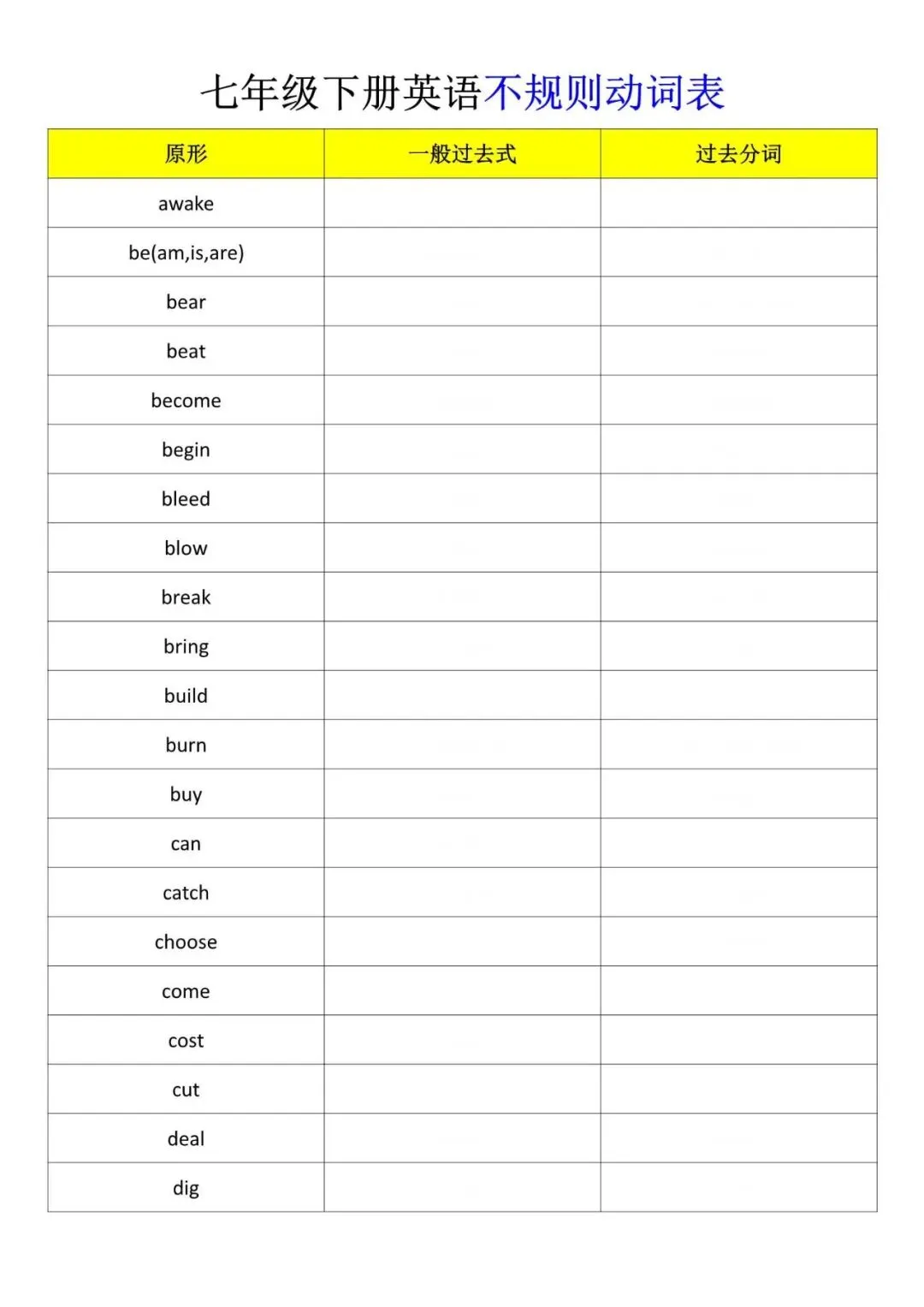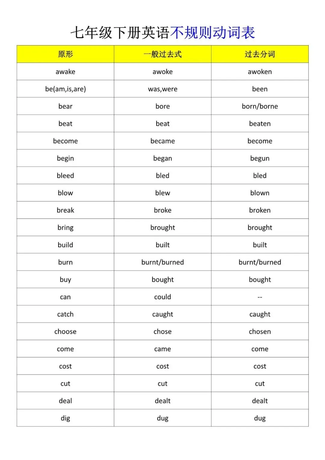 今天老师给大家整理了:七下英语不规则动词:可打印默写 + 自查对照,电子打印版!