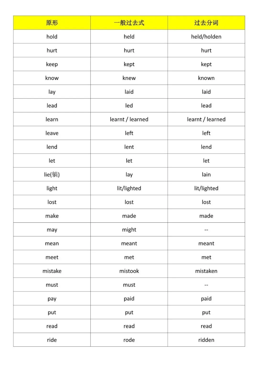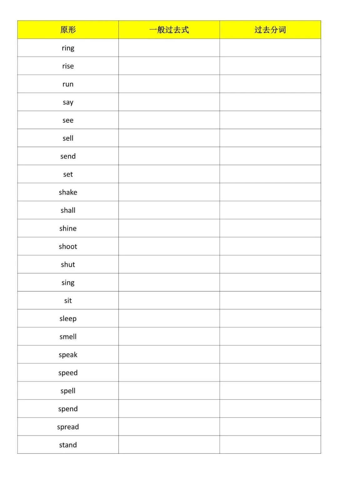 七下英语不规则动词:可打印默写 + 自查对照,电子打印版!