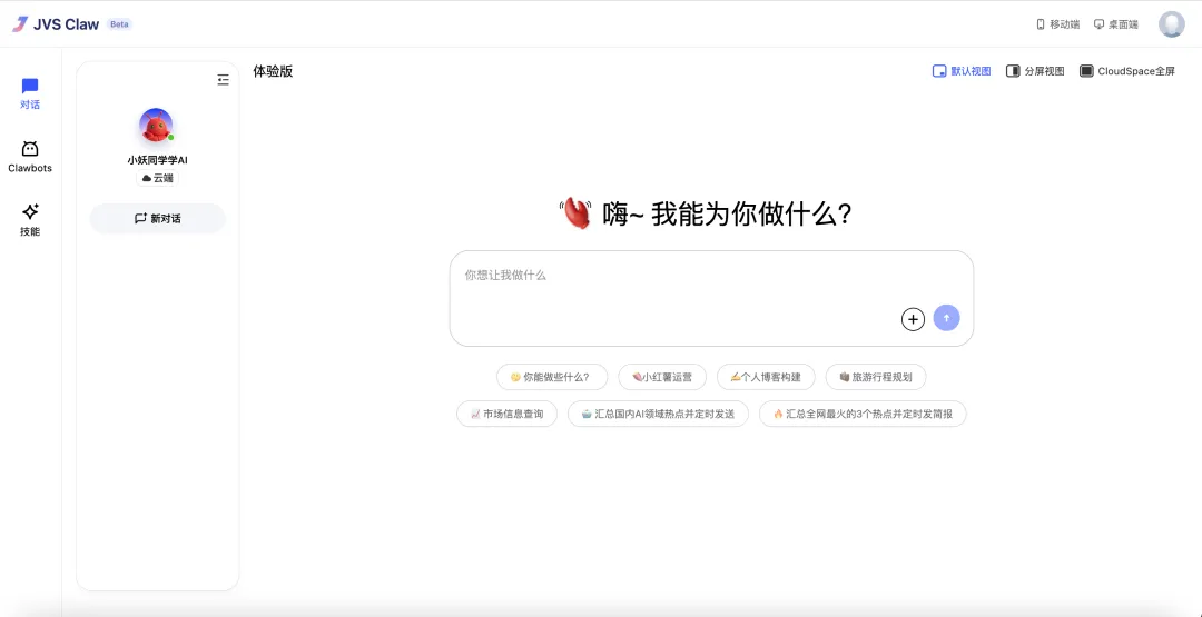 JVS claw 「Web端」jvsclaw.aliyun.com