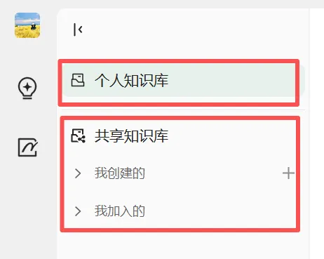打开ima知识库,左边是导航栏,右边是知识库内容。