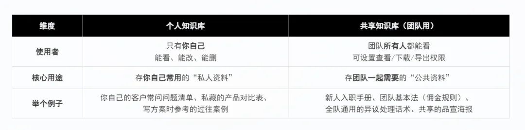 只放“只有你需要”的东西,比如你私藏的客户沟通技巧、自己总结的产品亮点,别把团队资料塞进来(会乱);
