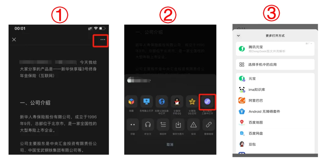 点击文章或文件右上角的【···】后,选择“在小程序工具中打开”,再选择【ima知识库】,点击后文章就直接转发到知识库,存进对应的文件里即可。