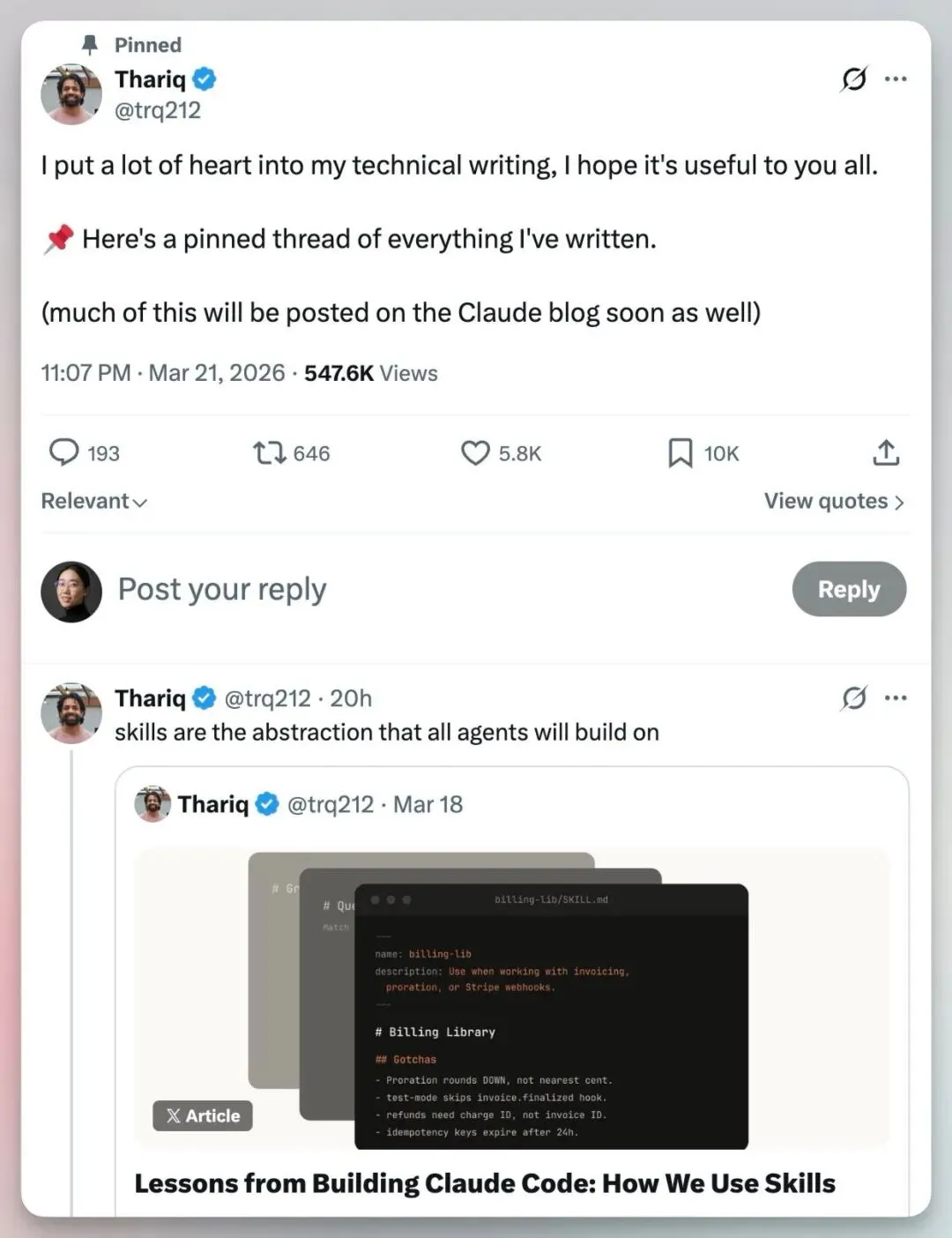 本文汇总了 Claude Code 核心成员 Thariq 分享的团队内部使用心得,包含架构设计、性能优化、工具设计、Skills 实战等核心主题。这些经验来自 Anthropic 团队构建生产级 AI Agent 产品的实践。