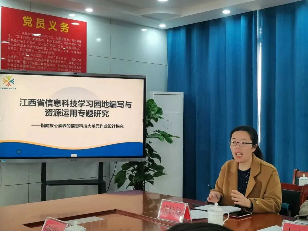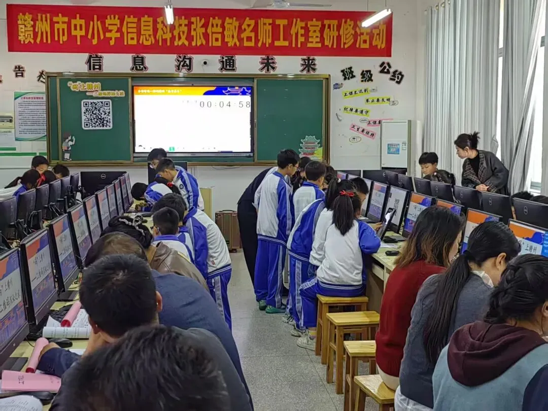 春归万物生,研思正当时。为充分发挥名师工作室的示范引领与辐射带动作用,深化信息科技课堂教学研究,2026年3月20日,赣州市中小学信息科技张倍敏名师工作室以“江西省信息科技学习园地编写与资源运用专题研究”为主题的集中研修活动,在南康区逸夫小学东校区顺利开展。工作室全体成员齐聚一堂,共研教学、互促成长。
