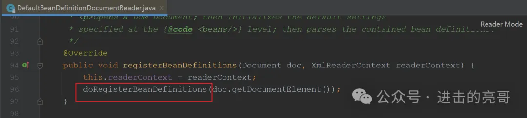 还记得XmlBeanDefinitionReader类的loadBeanDefinitions()方法吗?从这里一直找下去,就来到了这里