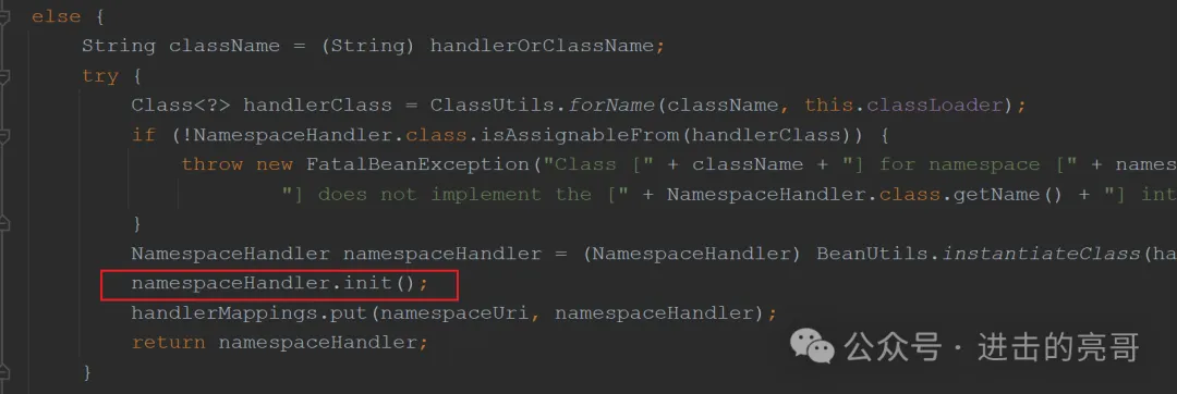 说明:利用反射创建操作类的实例并初始化,在本例中,对应的子类是AopNamespaceHandler